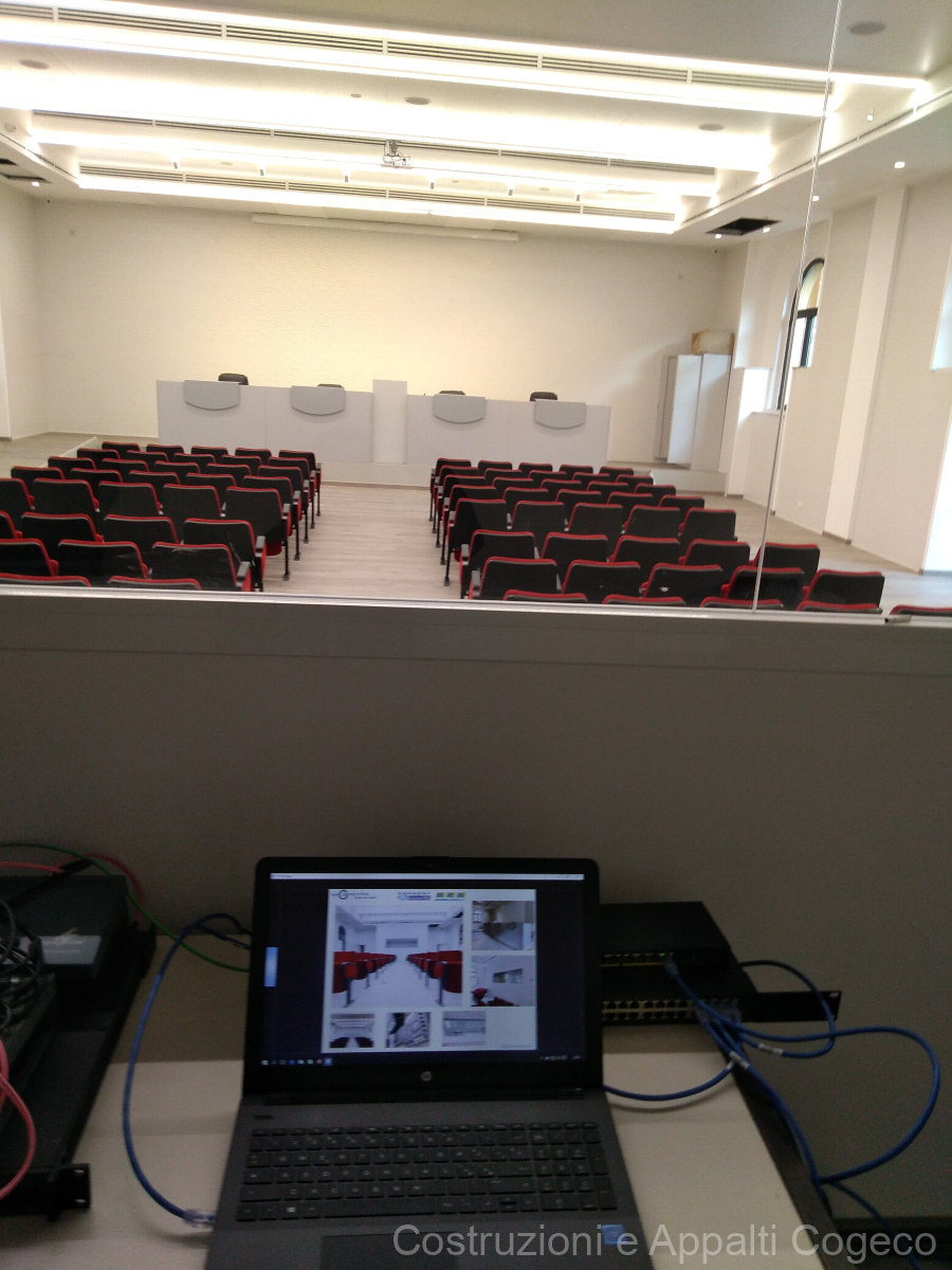 Descrizione del lavoro: Lavori di rifacimento di n.3 bagni con sostituzione porte; fornitura e posa in opera di nuovo parquet lucidato; realizzazione di nuova cabina regia; adeguamento impianto antincendio e sostituzione estintori in polvere; adeguamento impianto elettrico (illuminazione + FM); sostituzione porte di ingresso/uscita di emergenza e installazione corpi illuminanti presso gli ingressi (n.2) del Tribunale Ordinario di Roma – Settore Civile – Via Lepanto, n. 4 – Ex Caserma Cavour, Sala Musica. CIG 71708146E8 – CUP D84B16000150001
