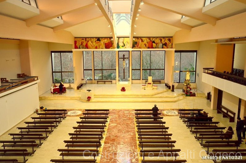 Lavori di tinteggiatura interna, sistemazione di marmi interni sostituzione altare, rifacimento pavimento interno, rifiniture interne e fornitura e p.o. stemma papale